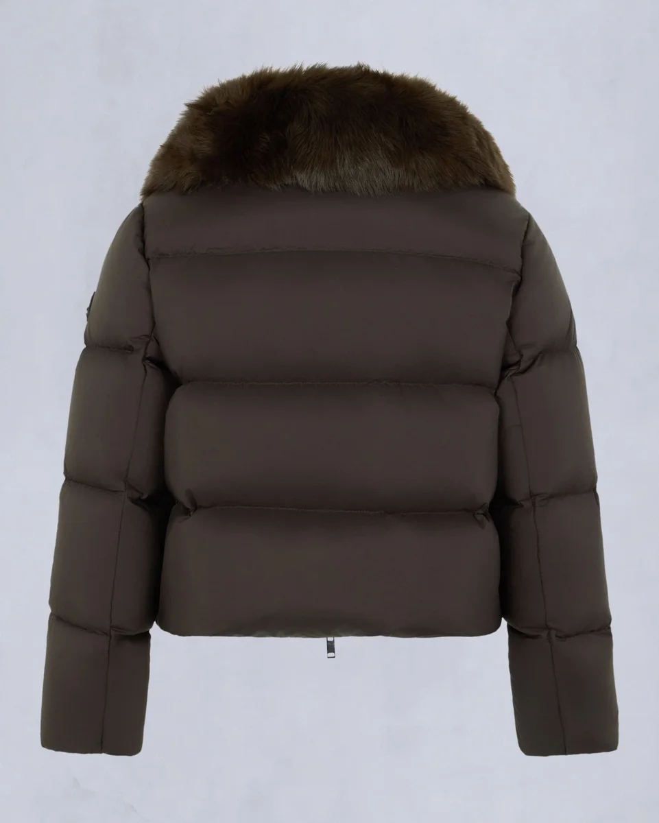 Entfernen Sie vor dem Waschen die abnehmbaren Besätze. Waschen Sie das Kleidungsstück auf links mit kaltem Wasser in der Maschine. Nicht bleichen. Trocknen Sie es bei niedriger Temperatur mit sauberen Tennisbällen im Wäschetrockner. Das Kleidungsstück muss vollständig getrocknet sein, bevor Sie es aus dem Trockner nehmen. Bügeln bei maximal 110 °C – ohne Dampf. Von innen nach außen chemisch reinigen – schonendes Verfahren.
