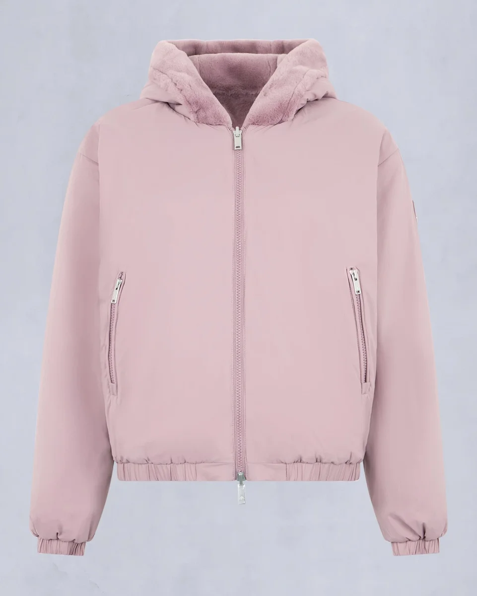 Erleben Sie Vielseitigkeit mit unserer vollständig wendbaren Jacke, die zwei unterschiedliche Looks bietet. Seidig weiches Kunstfell auf der einen Seite trifft auf umweltbewusstes Nylon-Micro-Ripstop auf der