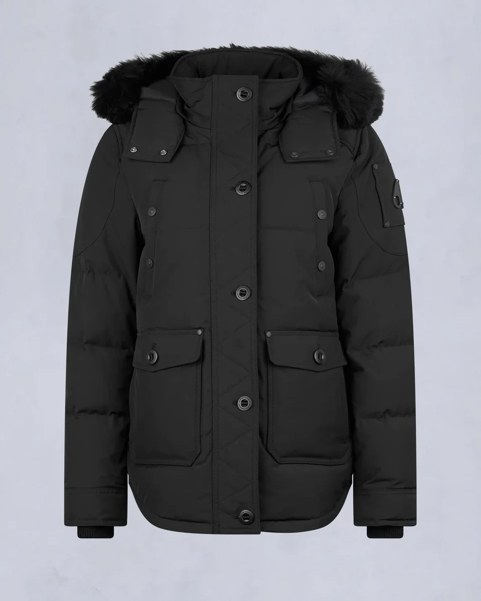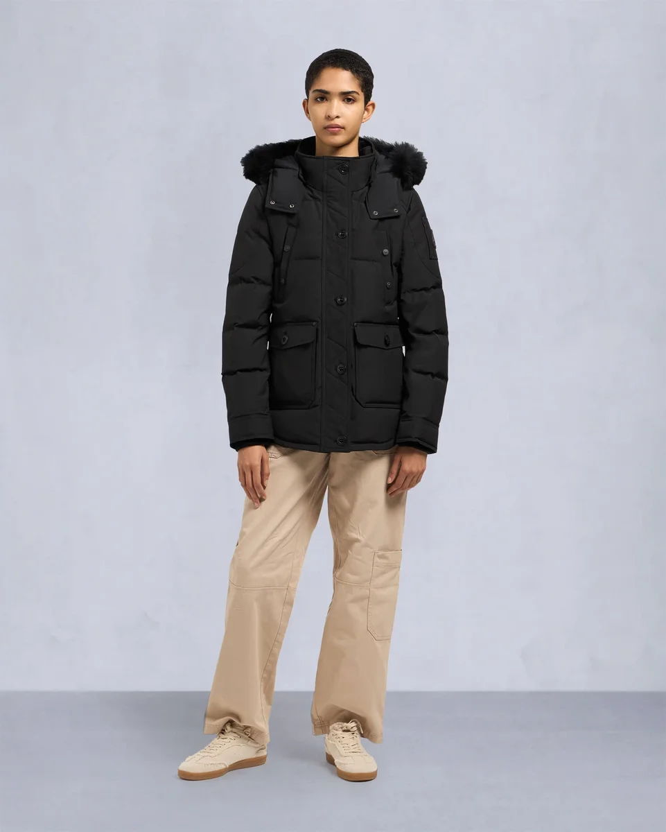 - Abnehmbare Kapuze mit Lammfellbesatz