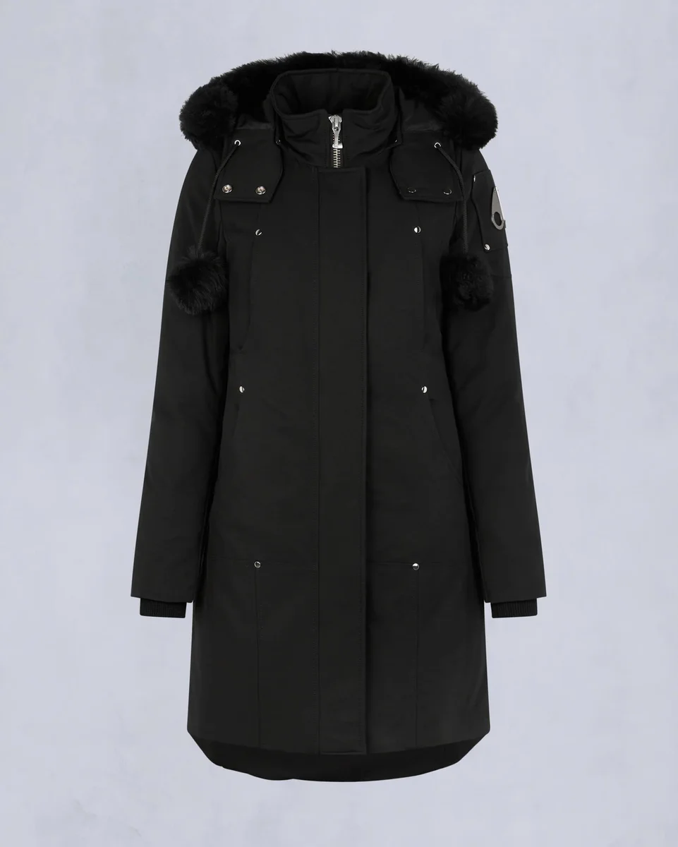 - Abnehmbare Kapuze mit festem Lammfellbesatz