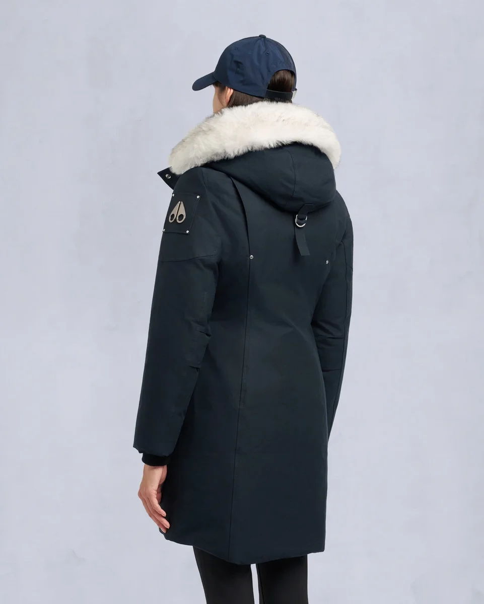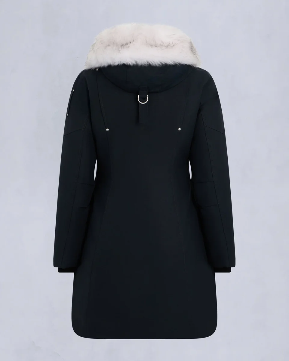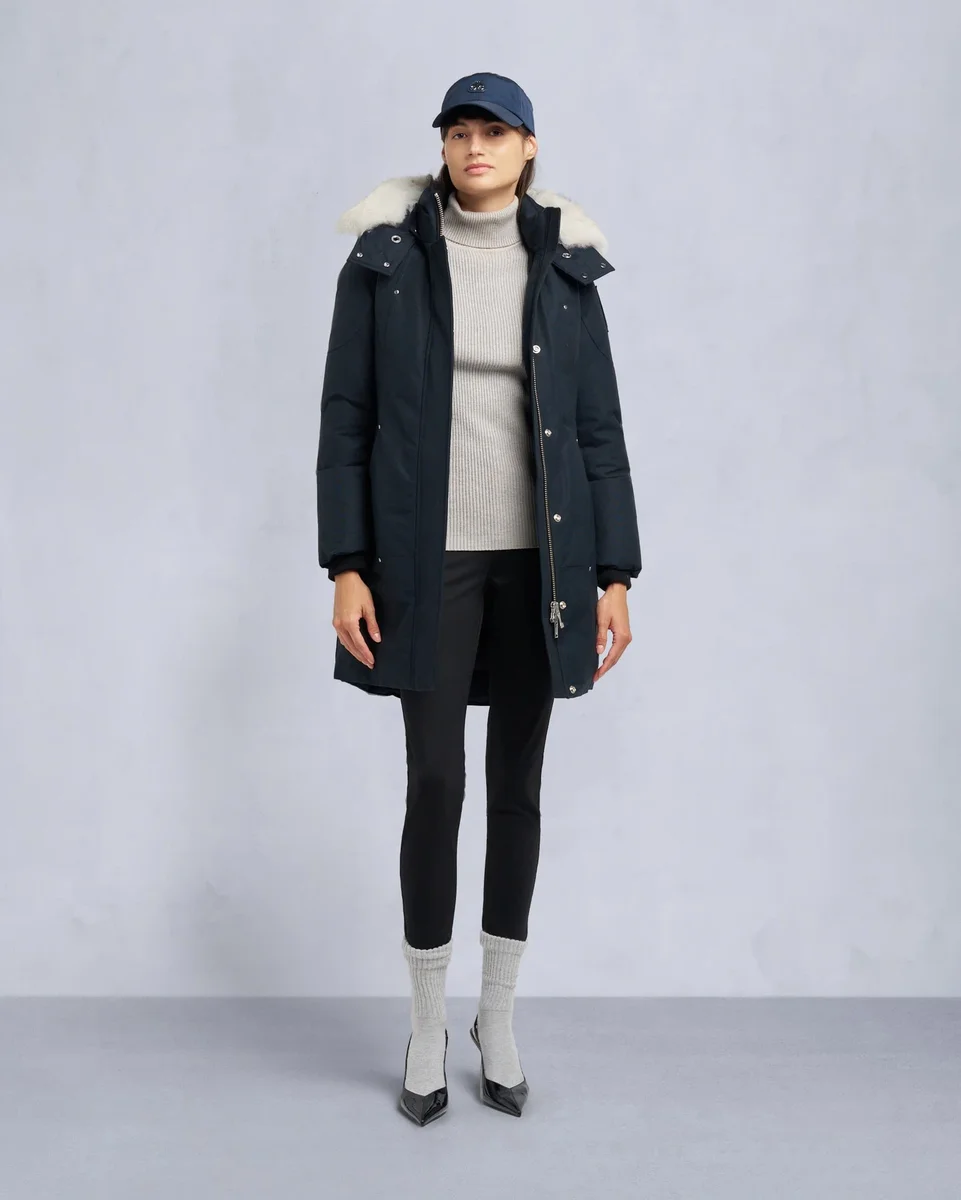 - Abnehmbare Kapuze mit abnehmbarem Lammfellbesatz und Bommeln