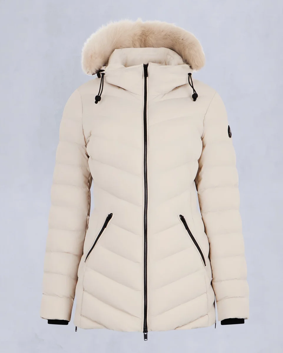 - Verstellbare Kapuze mit abnehmbarem Lammfellbesatz