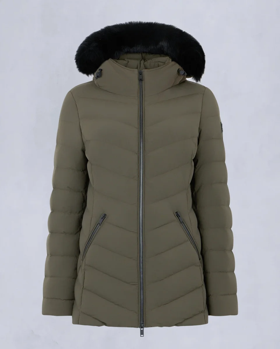 - Verstellbare Kapuze mit abnehmbarem Lammfellbesatz