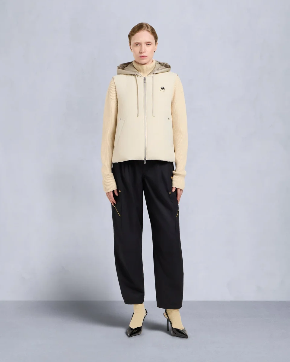Von innen nach außen chemisch reinigen – schonendes Verfahren. Bügeln bei maximal 110 °C – ohne Dampf.