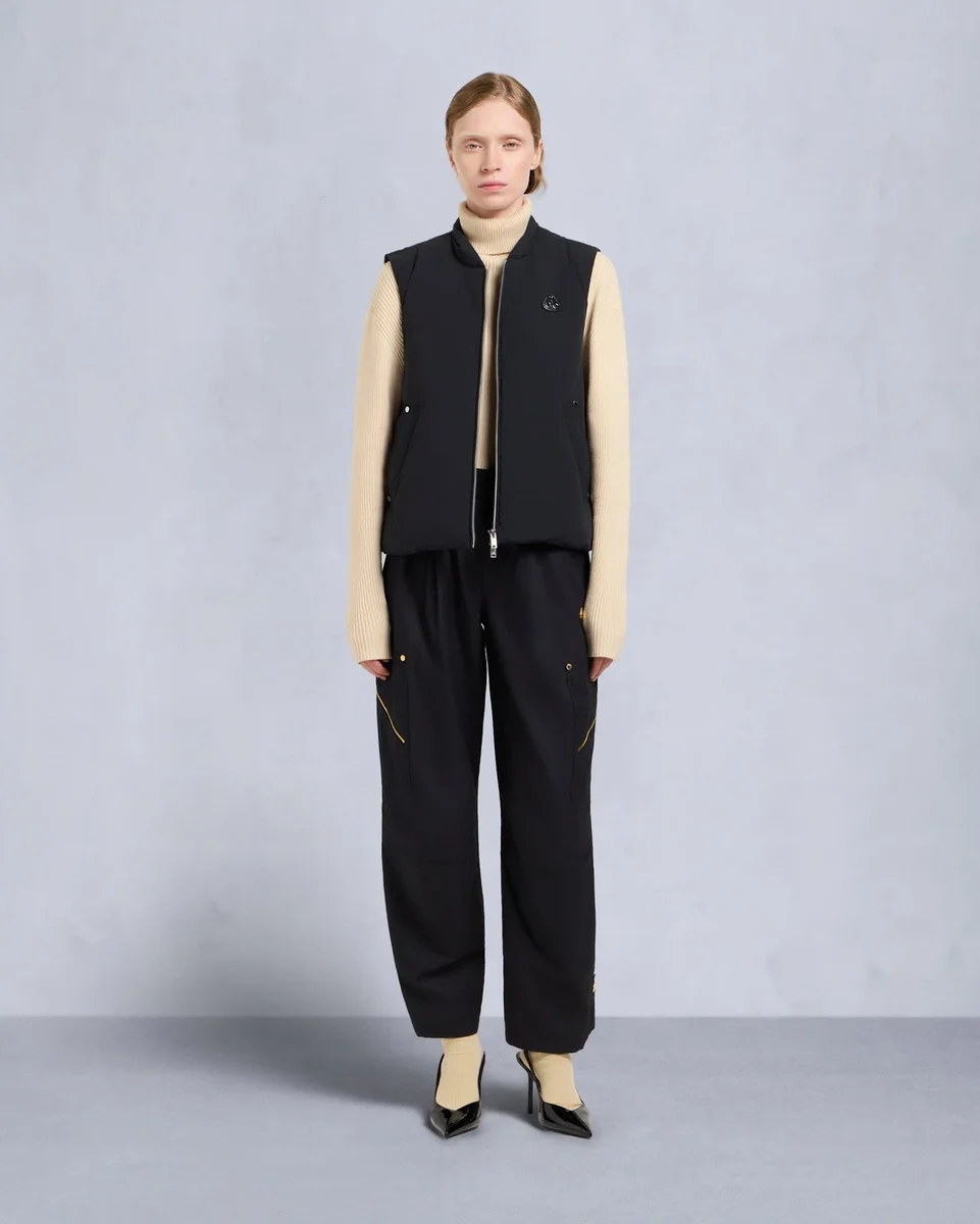 Von innen nach außen chemisch reinigen – schonendes Verfahren. Bügeln bei maximal 110 °C – ohne Dampf.