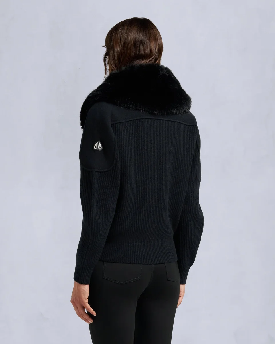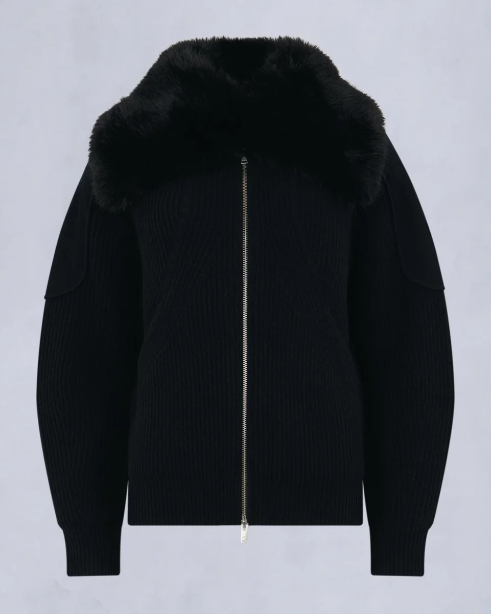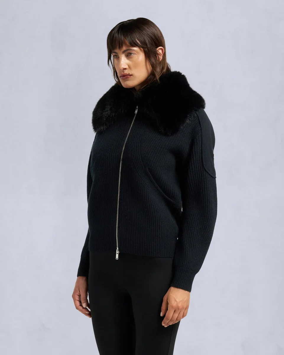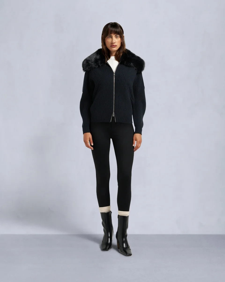 - Rippstrickkragen mit abnehmbarem Kunstfell