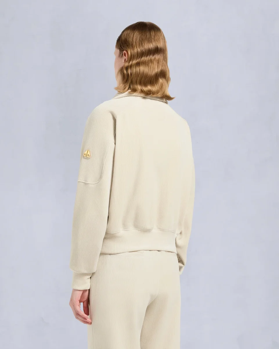 Genießen Sie luxuriösen Stil mit diesem ultimativen Zip-Up-Pullover aus superweichem Cord-Velours. Kombinieren Sie ihn mit der passenden Hose für den vollen Wohlfühleffekt.