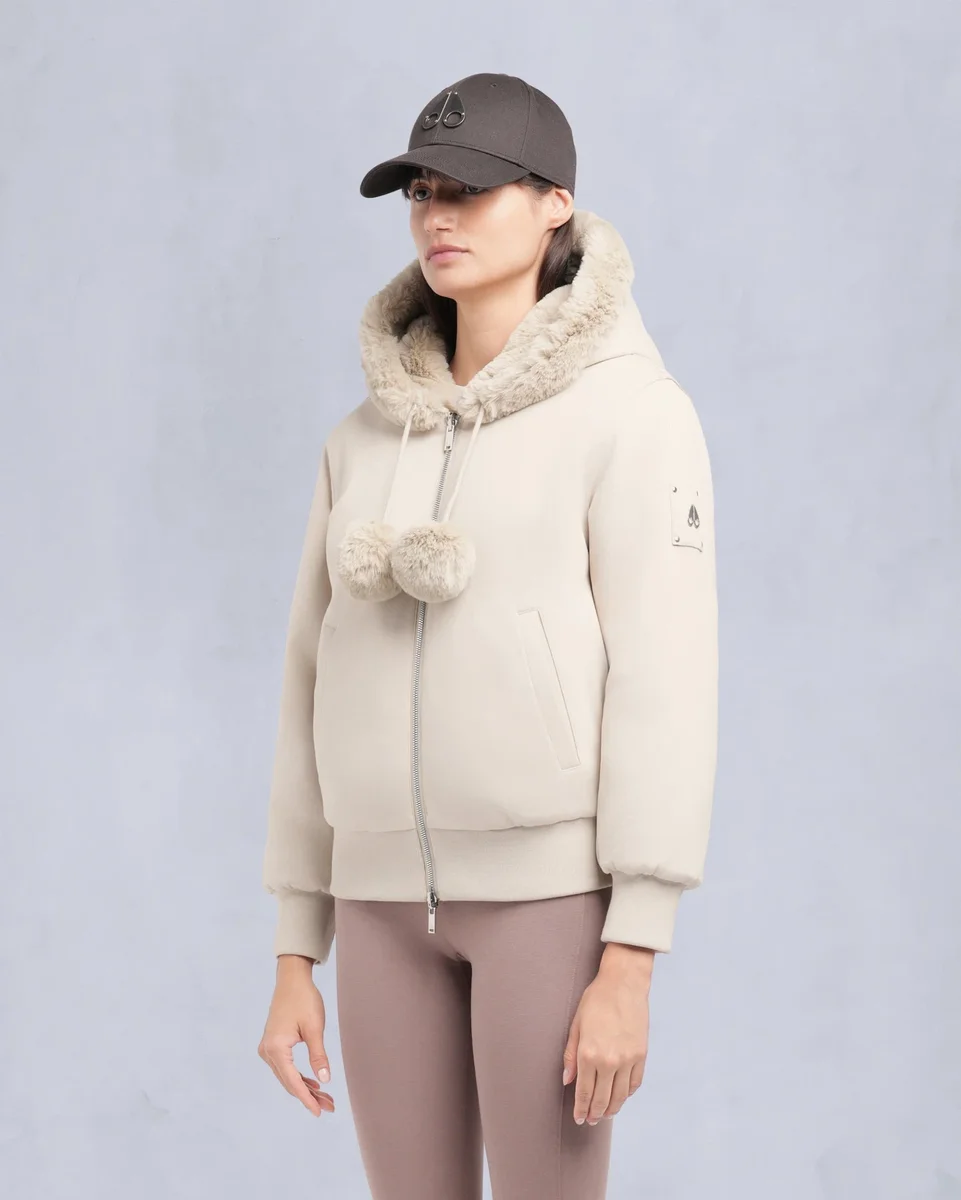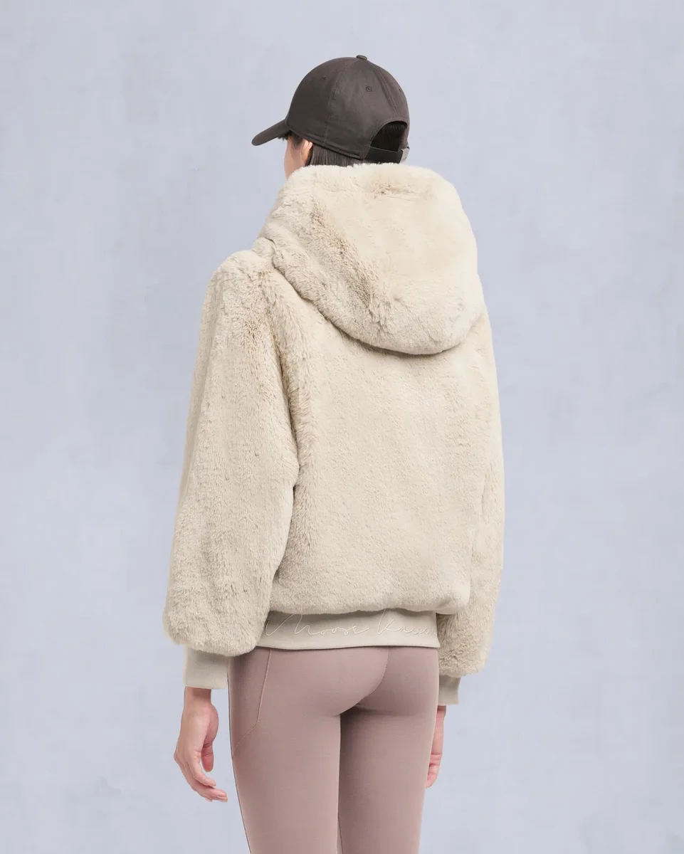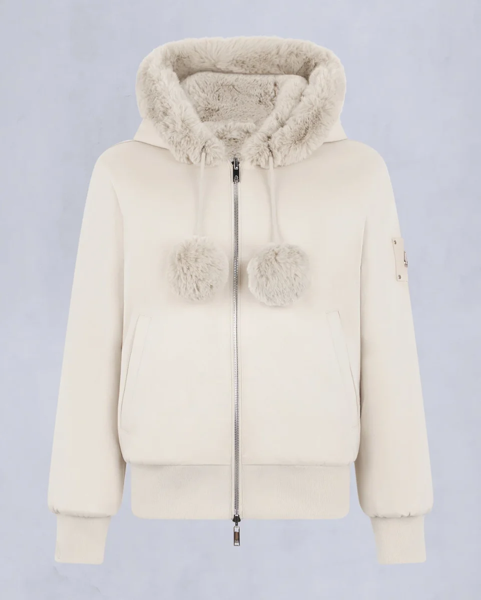 - Kapuze mit abnehmbaren Kunstfellbommeln