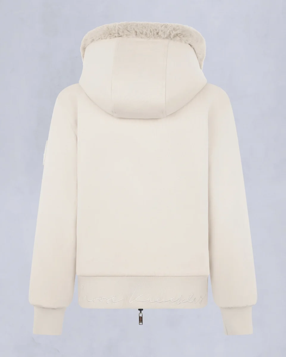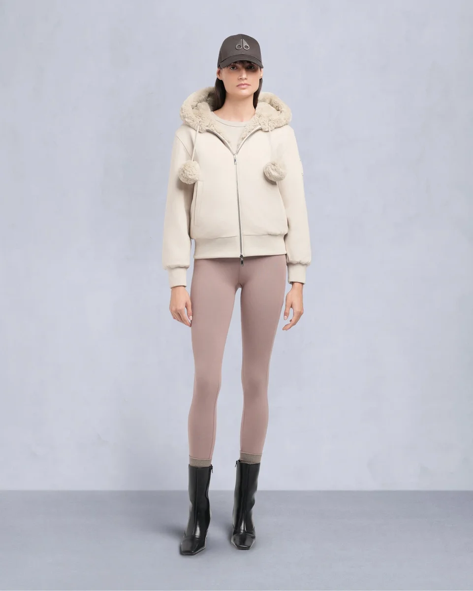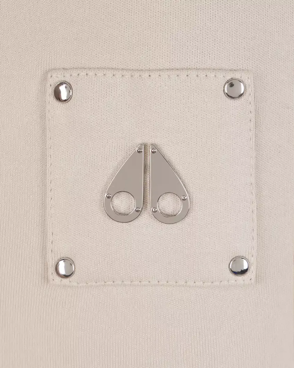- Seite B: Moose Knuckles Schriftzug am Saum