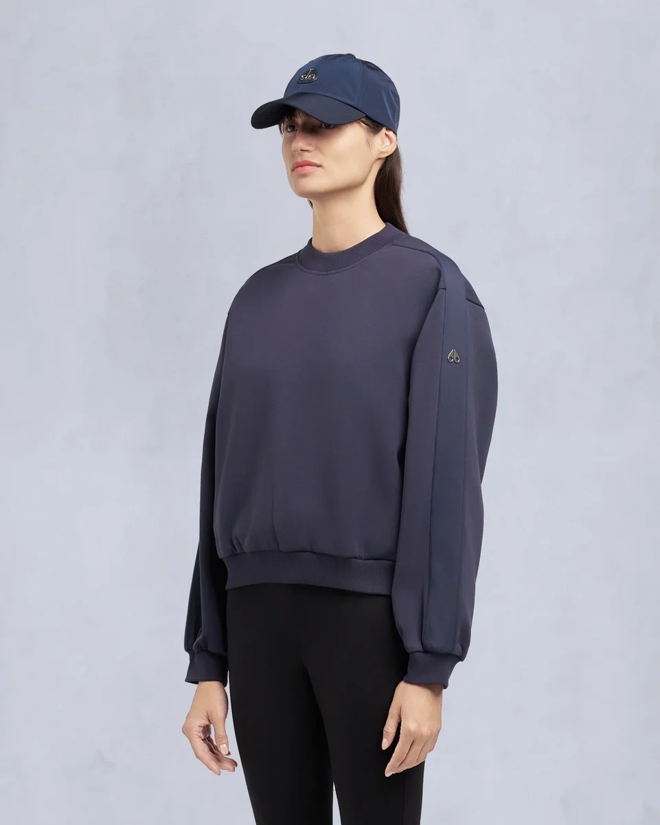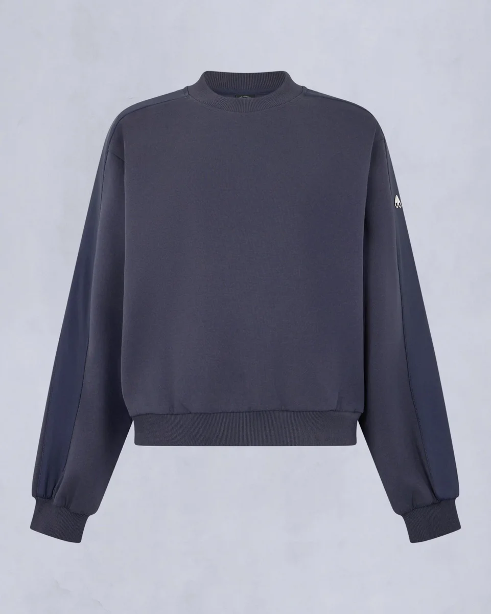 Das Mix Media ist eine schlanke Variante des Sweatshirts mit Rundhalsausschnitt und kombiniert dehnbares, atmungsaktives Material mit einem strukturierteren Hochleistungsmaterial. Das Ergebnis: