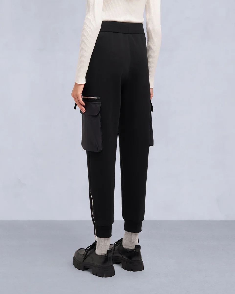 - Rippstrickbund mit Kordelzug innen, gerippte Strickbündchen und Reißverschlussöffnung am Hosenbein