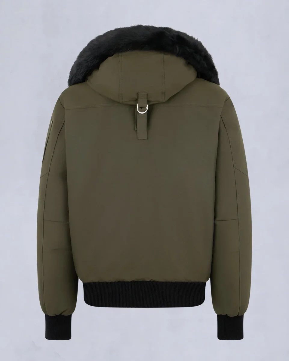 Die Gold Series Ballistic Bomberjacke besteht aus einem robusten Obermaterial aus einer Baumwoll-Nylon-Mischung, 90/10 Daunenfüllung und einer abnehmbaren Shearling-Kapuze und bietet maximalen Schutz vor der Kälte Kanadas.