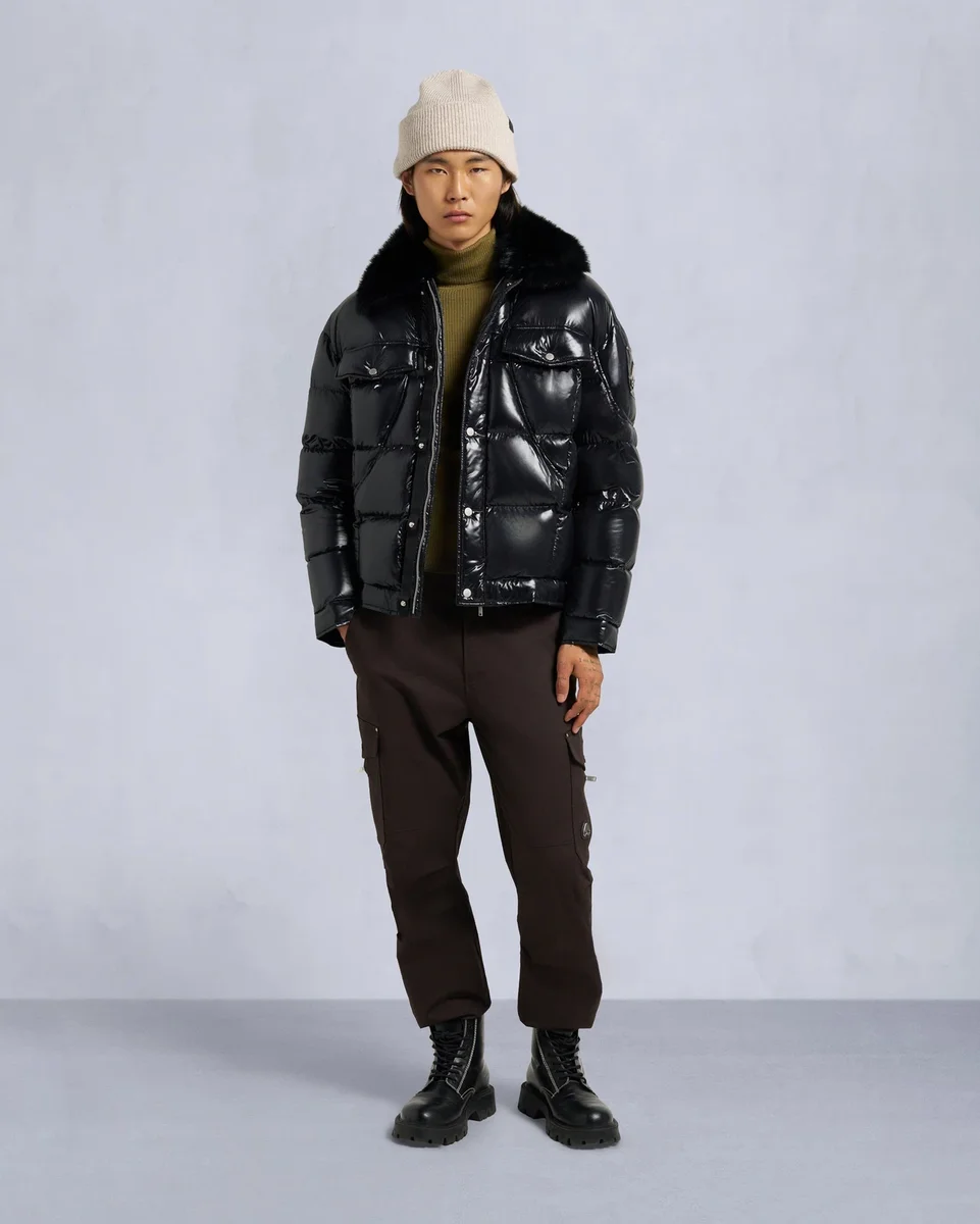 Die Briar ist mit leistungsstarker Entendaune gefüllt und interpretiert die moderne Hemdjacke durch stilvolle Details für kaltes Wetter wie einen Kragenbesatz aus Lammfell und eine Steppung neu.
