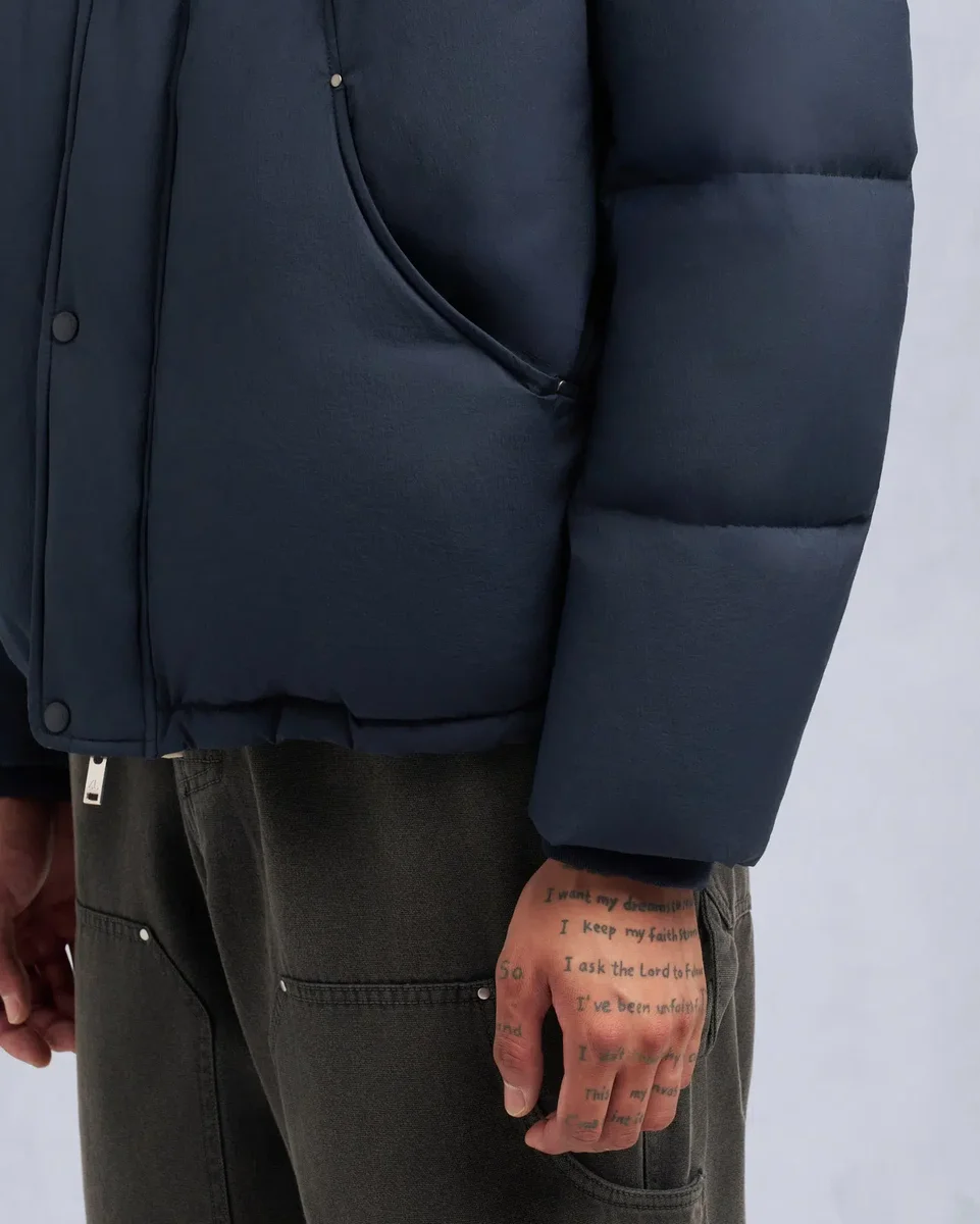 Maschinenwäsche kalt, auf links drehen. Nicht bleichen. Bei niedriger Temperatur mit sauberen Tennisbällen im Trockner trocknen. Das Kleidungsstück muss vollständig getrocknet sein, bevor es aus dem Trockner genommen wird. Bügeln bei maximal 110 °C – ohne Dampf. Innenseite nach außen chemisch reinigen – schonendes Verfahren.