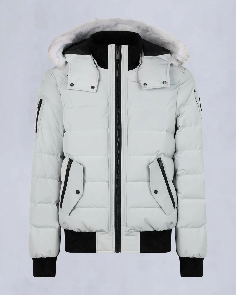 Mit unserer Bomberjacke mit eleganten einfarbigen Metallbeschlägen für einen modernen Touch bleiben Sie stilvoll warm. Diese Jacke wurde entwickelt, um auch der größten Kälte standzuhalten, und sorgt für